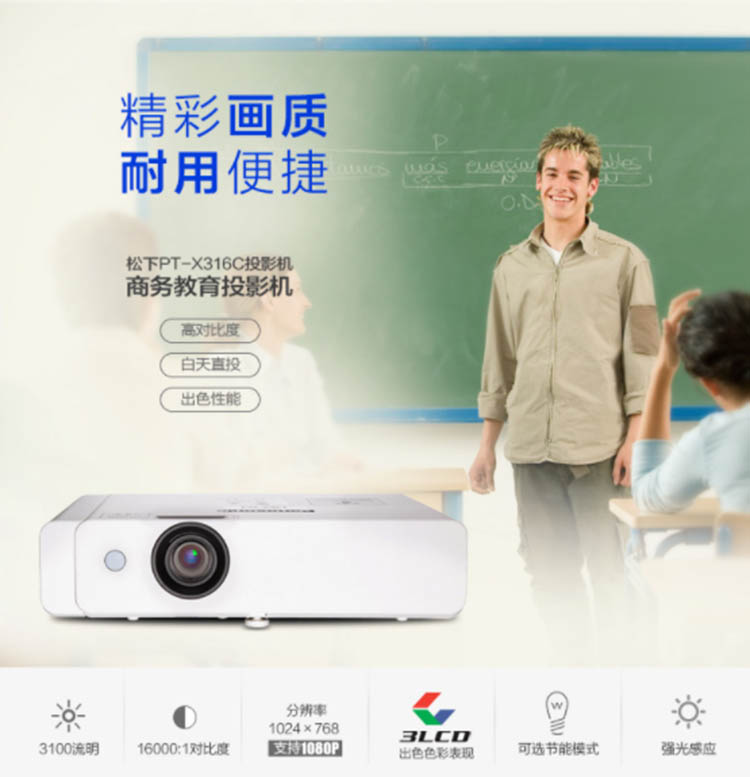 松下PT-X316C 投影仪 投影机办公(标清 3100流明 HDMI)