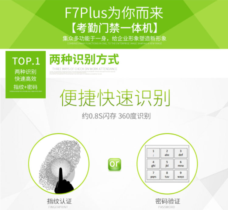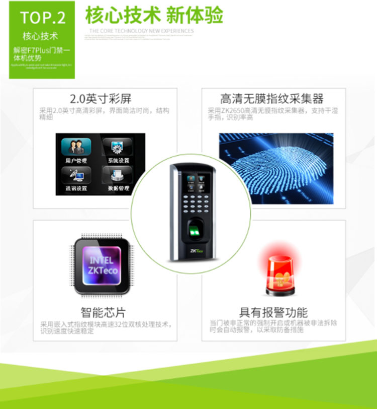 中控F7Plus彩屏指纹门禁一体机