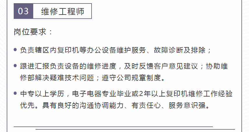 卓众东莞复印机出租公司,经过十几年的发展,业务范围也不断扩张,公司业务发展需要,现招聘如下人才: