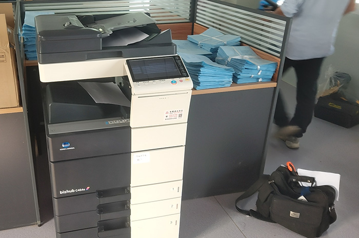 此次新增设备送达松山湖房地项目部使用,用户项目工程负责人及文印管理员表示对设备很满意,松山湖复印机出租服务的技术人员,现场组织用户使用人员培训使用细节和简单问题排除,用户积及配合,达到了理想效果,此次送机安装调试工作也非常圆 满的完成了,师 傅们工作顺心,用户使用的舒心!后期用户将所需文印输出的打印用纸也交由我公司供货,对于用户的工作也起到了省时、省心、省力的作用!