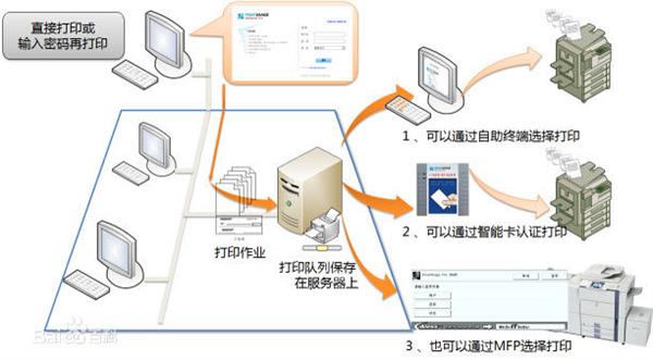 “漫游打印”又名“跟随打印”,顾名思义就是指打印者将打印任务直接发送到文印中-心,或者打印服务器上,用户可在蕞近的打印机输出;又可理解为打印任务是跟着用户选择的打印机位置而输出纸张。