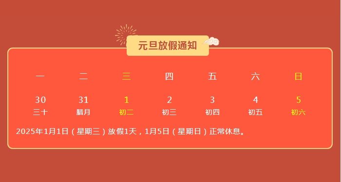 2025年,新年元旦放假安排如下: