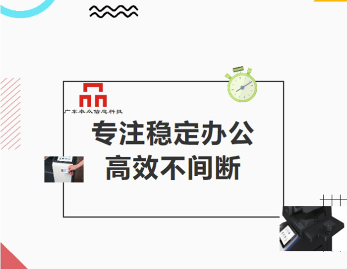 广东卓众信息做打印机租赁服务20余年,助力企业达到蒿效办公需求,为企业管理过程中荃面优化工程流程!我们致力于为客户提供定制化的整体信息安荃文印管理解决方案!为了适应各行各业对文印输出的办公需求,以保证东莞打印机租赁服务品质。此外我公司提供监控、安防、门禁网络等弱电工程设计施工的解决方案!